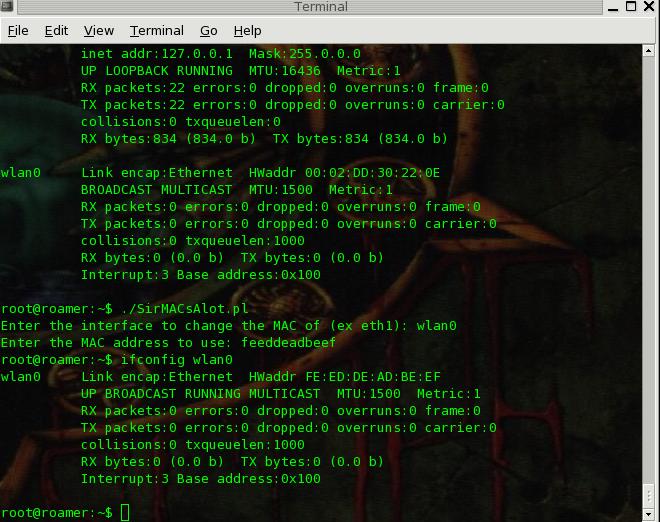 Since MAC spoofing is so easy in Linux the tool (SirMACsAlot) is very Idjit Friendly (i.e. it prompts you for everything). It is kind of fun to play with though. If you'd like to try it out it is available now at: